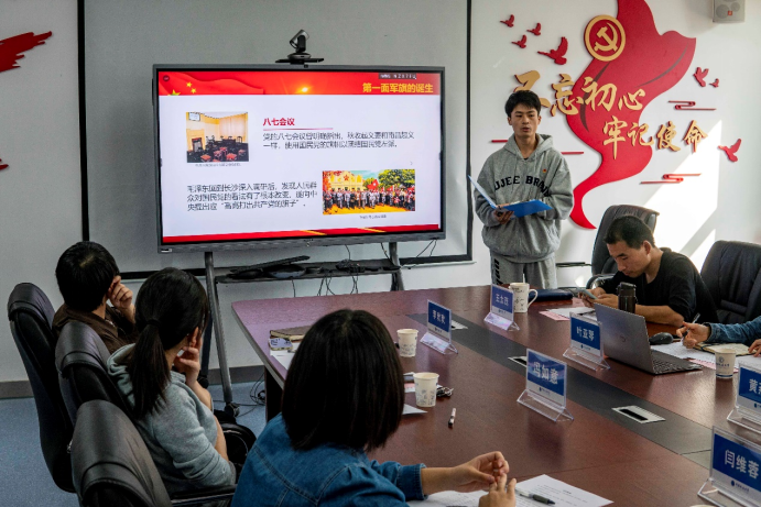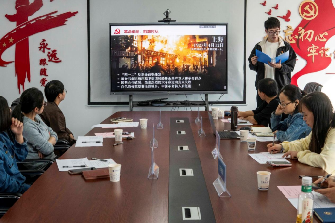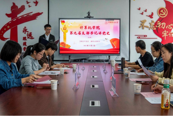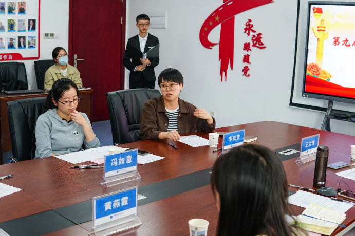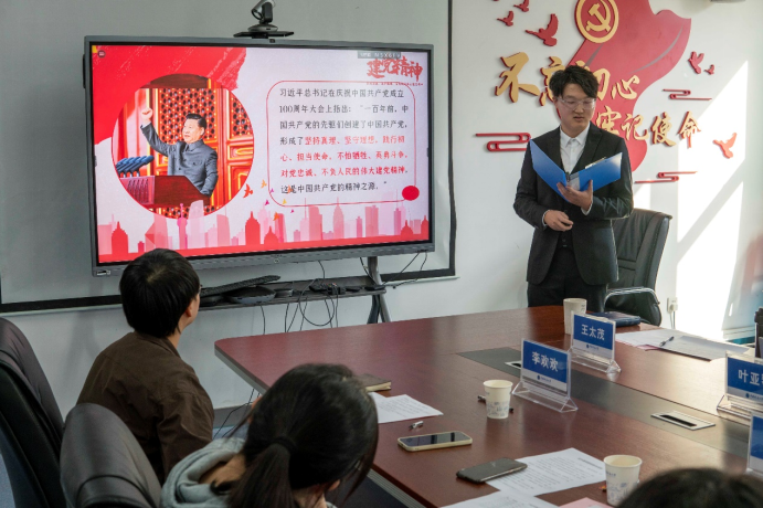 2022年11月3日下午,公司第九届“支部书记讲党史”员工团支部书记组比赛在公司309会议室举行。院直党支部书记黄燕霞,人工智能系党支部组织委员冯如意,软工党支部书记叶亚琴,团委书记李欢欢,员工党建办公室主任王太茂,心理健康指导老师闫维蓉,院员工会指导老师李祥瑞现场观摩。党建办公室组织部副部长靳博原主持活动。