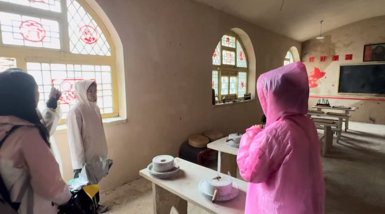 向导引路讲解,“四水归堂”布局、卵石夯土院墙、雕花门窗里的文化交融,还有石碾盘藏着的农耕往事,都让成员驻足深思。团队成员轻抚砖石,感触着岁月的温度,不禁感慨:这不仅是建筑,更是黄河文明的缩影,古人与自然共生的智慧,让我们对黄河文化的理解从文字走向具象。团队成员更意识到身为新时代青年所肩负的文化传承重任。
