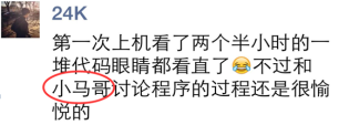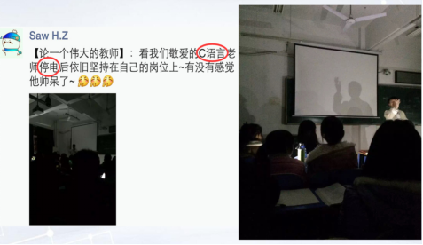 做让员工喜欢的老师,上让员工喜欢的课,这可能是每一个老师追求的梦想。“亲其师”之后,“信其道”和“乐其学”通常会接踵而来。“C语言就是我最喜欢的课程”,工程公司21级新生郭云青说。很快马老师发现,朋友圈里有很多帖子,它们都有一个共同的关键词:抢座位,有越来越多的同学开始不再惧怕“C语言”,反而提前两三个小时来教室占座了。“明晚想看湖南卫视跨年演唱会,还想看公司的晚会,想玩游园嘉年华,然而我也不忍心翘‘C语言’,真是难过”2015年12月31日跨年夜的晚上,有员工发出了这样的感慨。那晚正好有两节《C语言》课,马老师原以为那晚可能会有很多同学请假甚至旷课,没想到大家全都坐在了教室里,那年公司校报和官微在新年的第一天同时刊登专题报道: 跨年夜地大老师用C语言献祝福。2016年的某一天晚上,北综突然停电,教室里一片漆黑。马老师说:“哗然过后,正当我不知所措的时候,同学们竟齐刷刷地举起了手中的手机,打开电筒,照亮了教室,也照亮了我的心,那节课我们就在这道别样的光芒中坚持上完了,这道光芒,属于教室中的每一个人,令我终生难忘。那些所谓的流量明星面对荧光棒时的感觉不过如此吧,当老师,其实很幸福,值得了。”