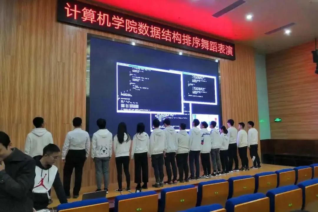 除了在办公室谈心谈话,宿舍、课堂、操场都能经常见到他与员工在一起的身影。每周“三必访一请教”是他对自己的基本工作要求,访早操、访课堂、访宿舍,并常常与任课老师交流沟通,了解同学们的学习情况,及时发现问题并予以解决。如,当他发现同学们学习“数据结构”这门课比较吃力时,他便协助任课老师组织同学们编排算法排序舞蹈,让同学们在舞蹈中学习代码的奥秘。