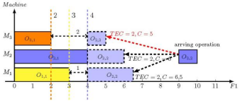 针对以上问题,考虑到Type-2模糊系统对加工时间不确定性的更好的表达能力。该论文提出基于强化学习的模因算法求解带第二类型模糊加工时间的绿色柔性作业车间调度问题。1)构建了以同时最小化最大完工时间和总能耗为目标的混合整数线性模型;其次,提出了一种混合初始化策略包含五种启发式策略以获得高质量初始化种群;2)采用基于分解的多目标优化框架,采用Q学习算法结合非支配解集的收敛性和分布性两个指标,对于邻域大小进行自适应调整,增强算法分布性;3)提出了四种针对问题特性的局部搜索策略;4)提出了一种贪心节能策略,采用最小能耗的原则对每个解进行重构。论文提出的算法相对于最新的主流算法,综合性能表现最佳,表明所提出了改进策略能有效提升算法的求解能力。