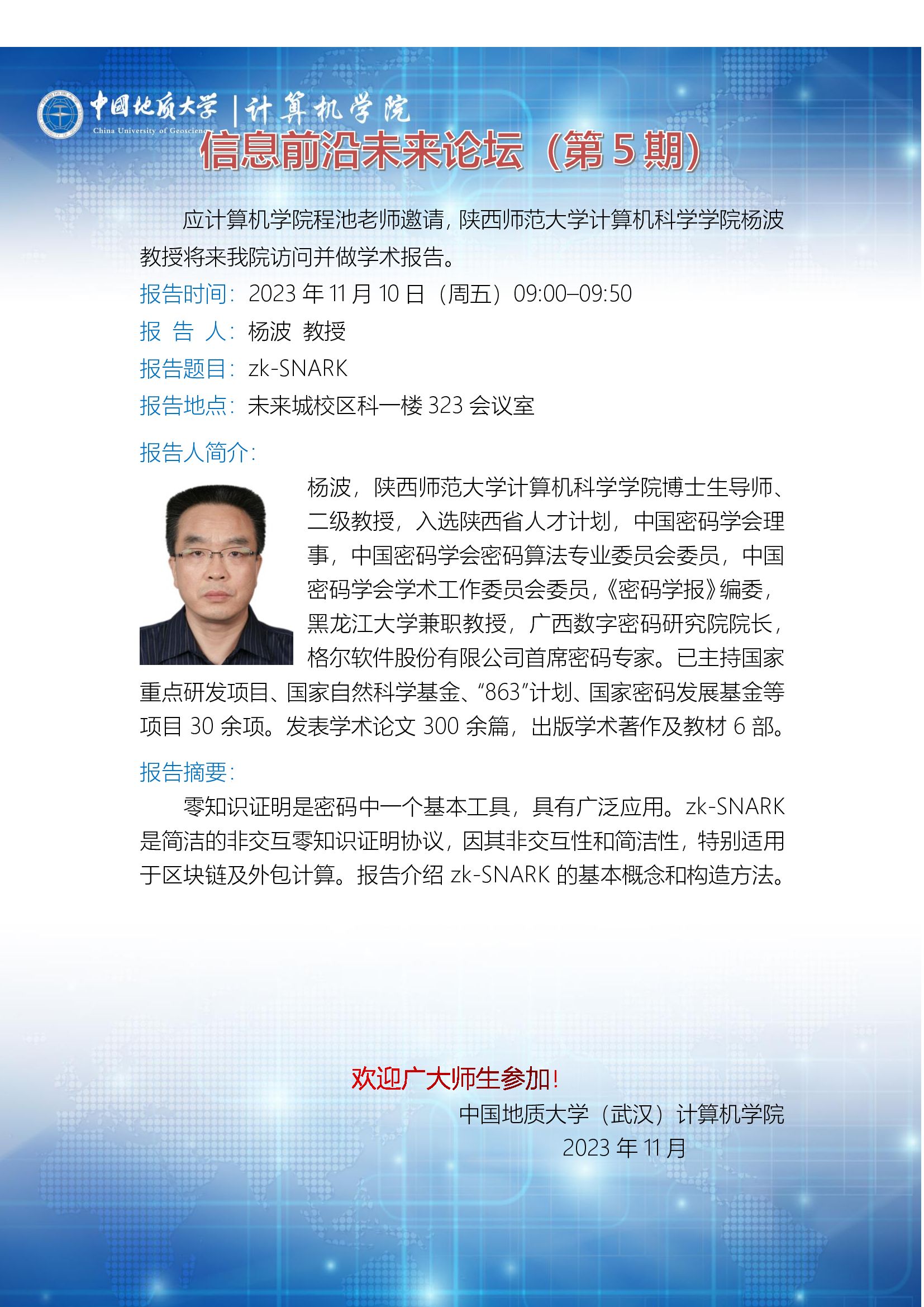 信息前沿未来论坛(第5期):陕西师范大学杨波教授——zk-SNARK